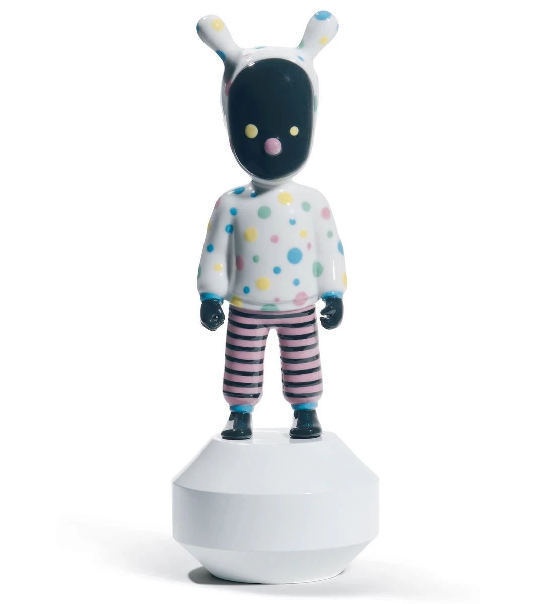 Voici ici The Guest designé par Jaime Hayon et habillé par le collectif japonais Devilrobots. The Guest est un personnage imaginé par Jaime Hayon pour Lladró Atelier, l’idée de The Guest est de proposer d’inviter des artistes à collaborer avec Lladró Atelier en customisant ce personnage enfantin et mystérieux.