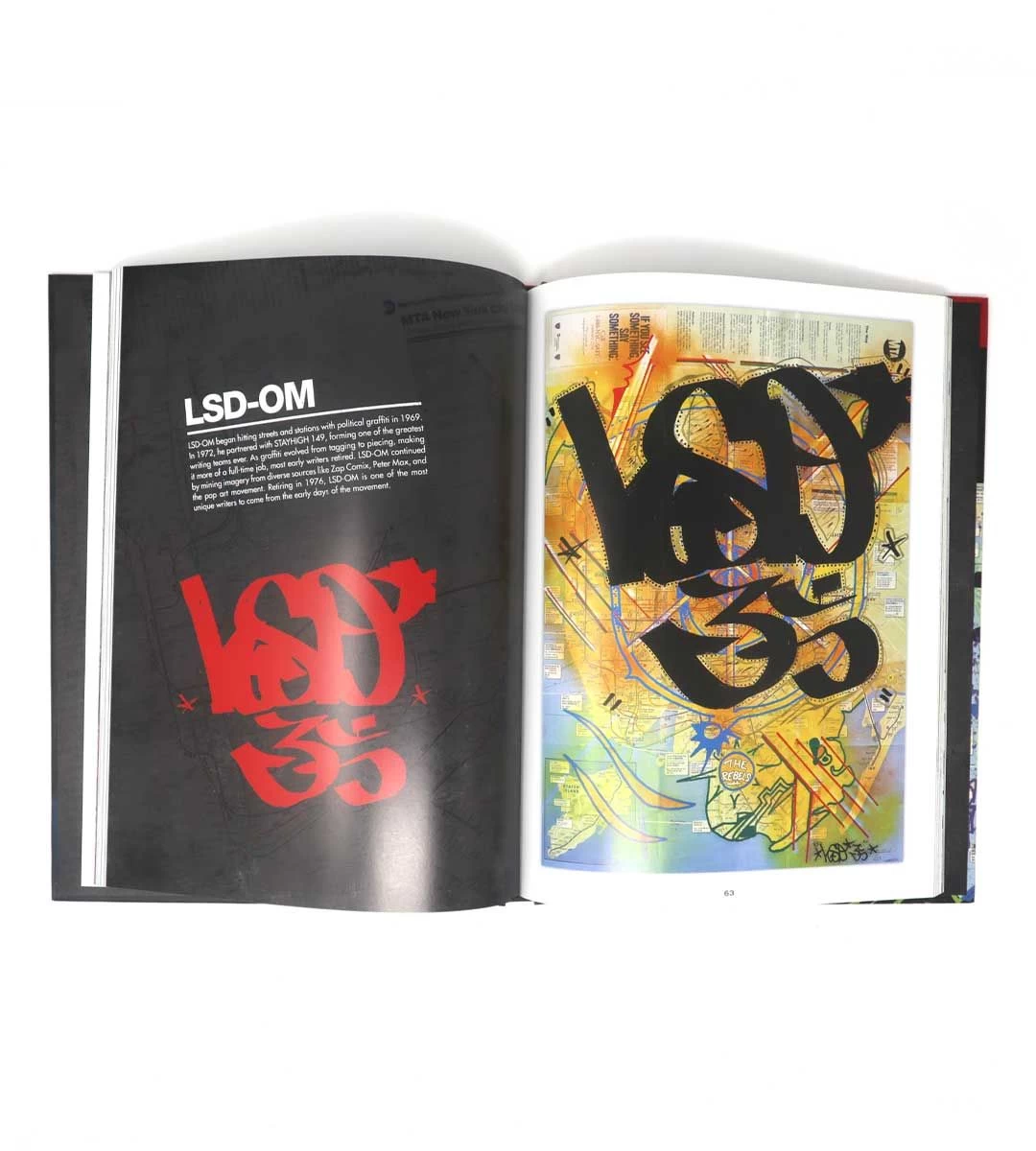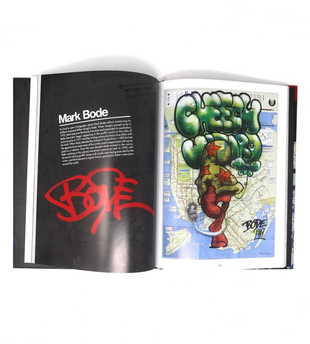 GHOST, T-KID, QUIK, REVOLT, BLADE, SHAME125, COPE2, SKEME, and others decorated ordinary 23″ × 32″ MTA maps with their personal tags and graphics—echoing the heyday of New York train graffiti. Sixteen sections, one for each writer, feature a total of more than 100 maps, as well as brief statements about the painters’ artistic evolution and style.