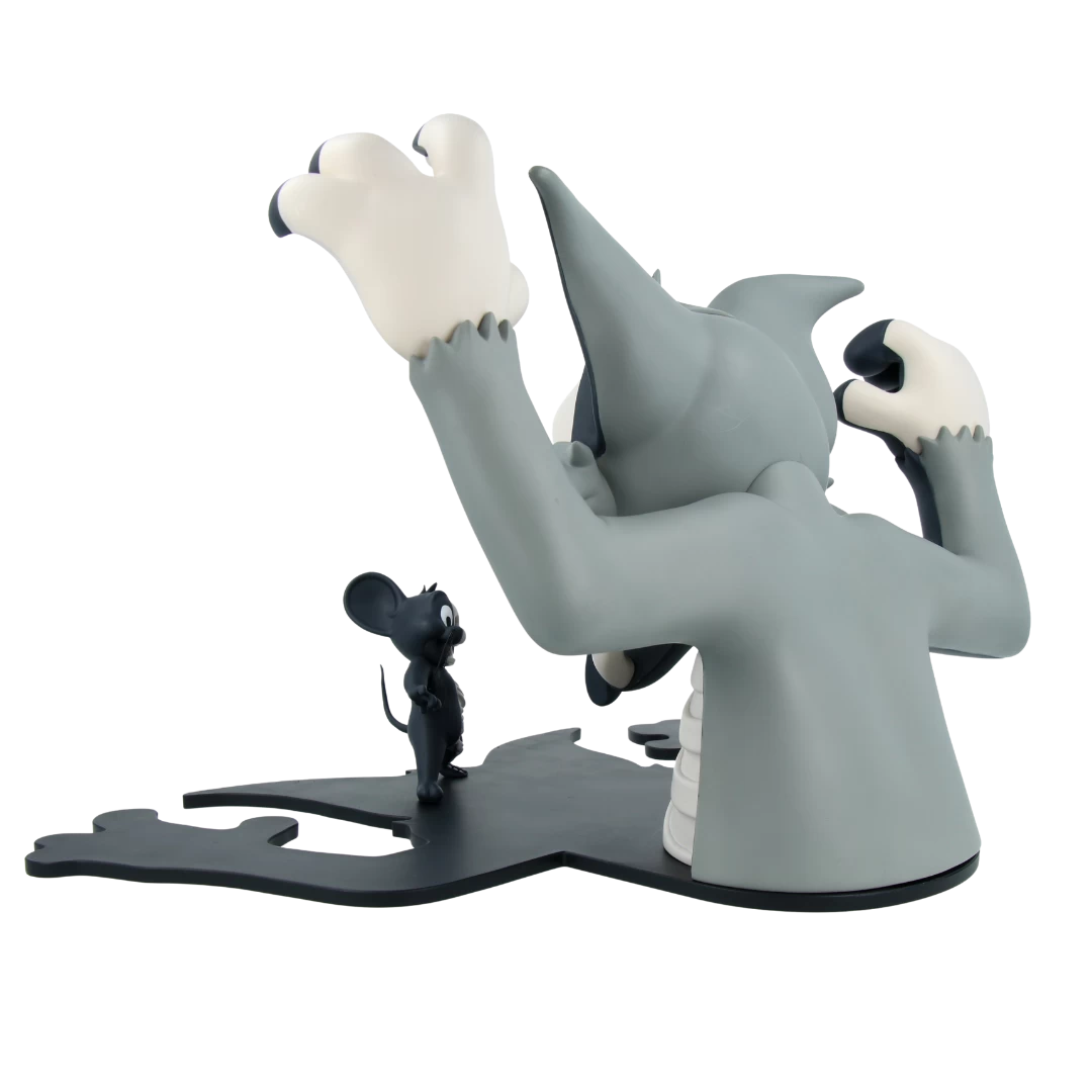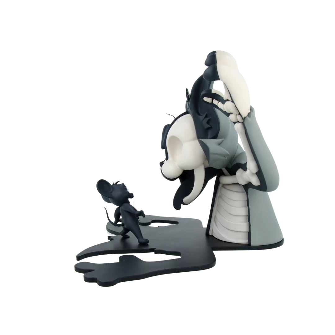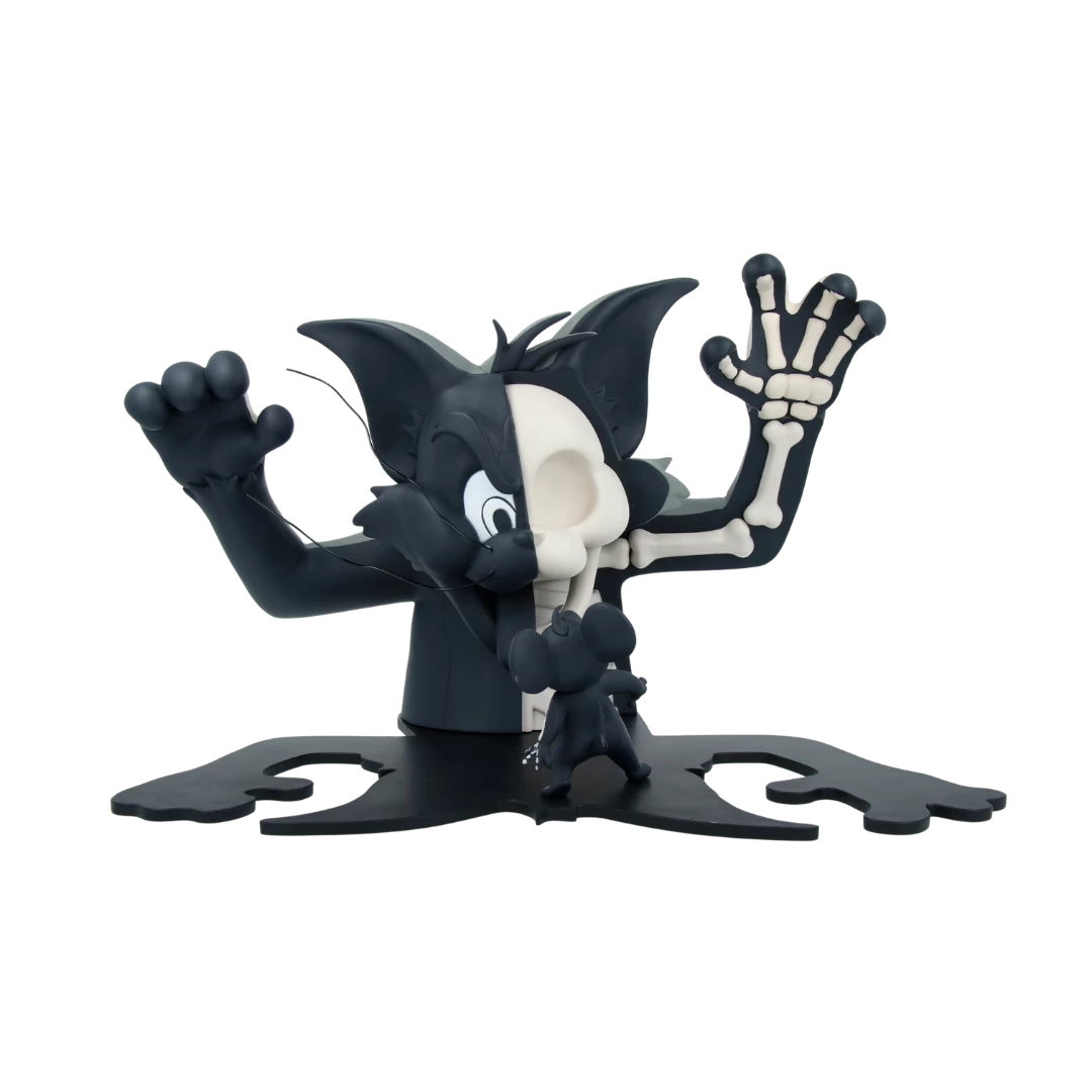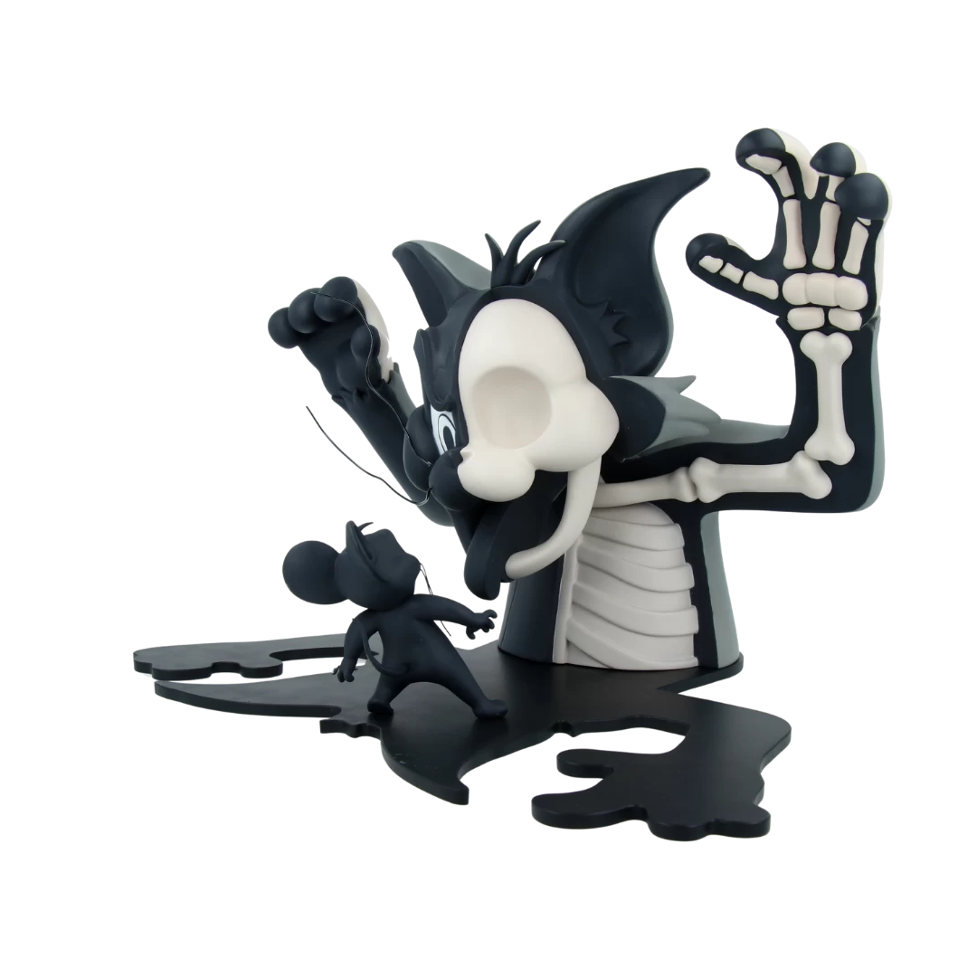 Personne n’Ă©chappe Ă la dissection de Jason Freeny ! On retrouve en figurine Mighty Jaxx XXRAY Tom, sortant ses griffes et dominant Jerry, qui se trouve dans l’ombre du chat.Â